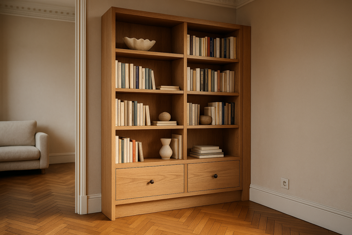 Le budget d'une bibliothèque sur-mesure varie selon plusieurs facteurs : les dimensions, les matériaux choisis, le niveau de finition et la complexité du design. Chaque projet étant unique, nous établissons un devis personnalisé après la consultation initiale. Ce devis détaillé vous permet de comprendre précisément ce qui est inclus. Nous nous engageons à vous proposer la meilleure qualité en accord avec votre enveloppe budgétaire, sans mauvaise surprise.