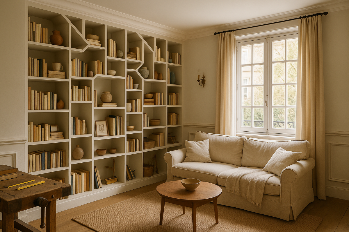 Une bibliothèque sur-mesure offre une décoration personnalisée qui valorise immédiatement votre espace. Vous choisissez les dimensions, les couleurs, les finitions et l'organisation interne pour un résultat parfaitement cohérent avec votre identité. 💡